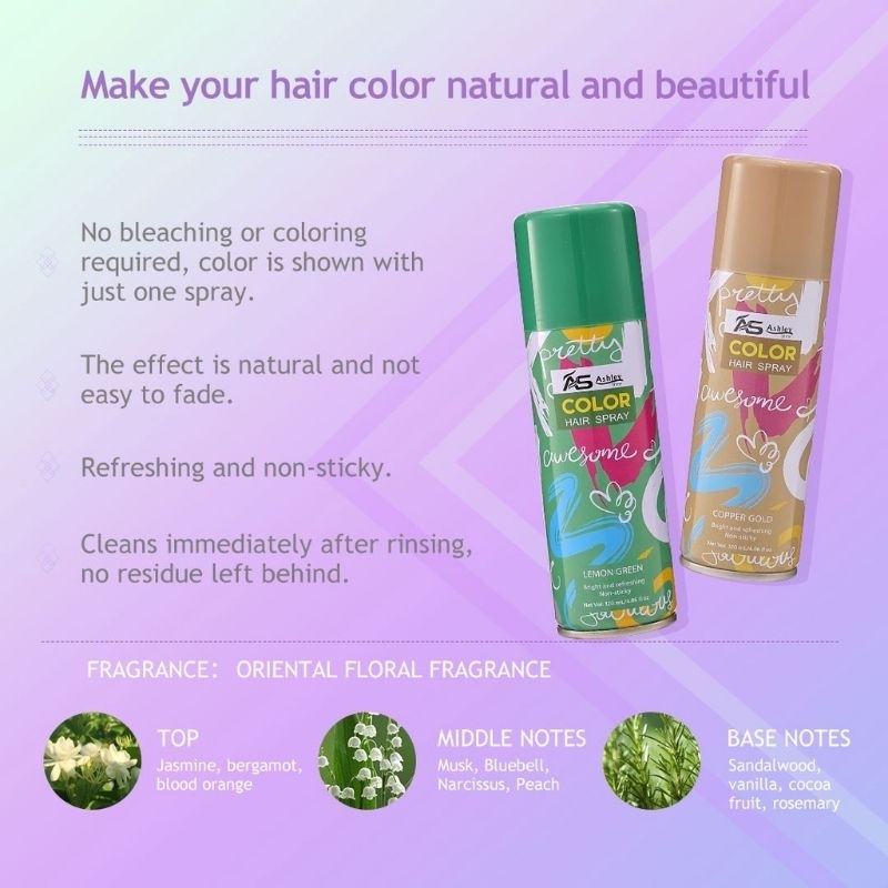 AshleyShine Washable Hair Color Spray Hair Dye Safe and No Damage to Hair Temporary Hair Color 120ml