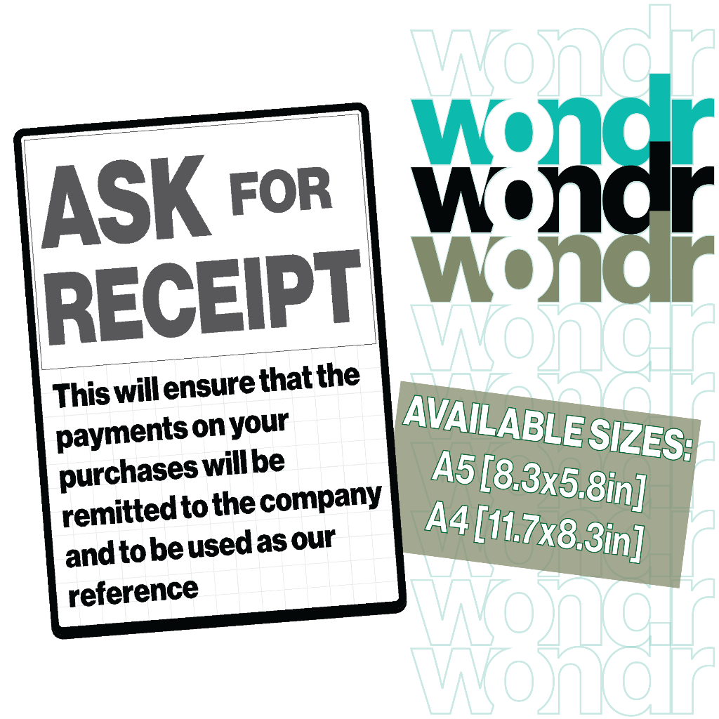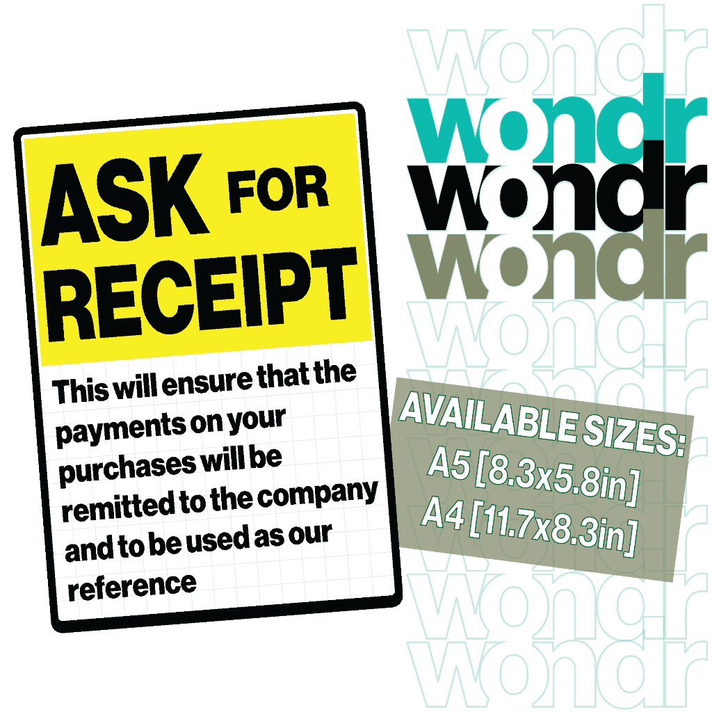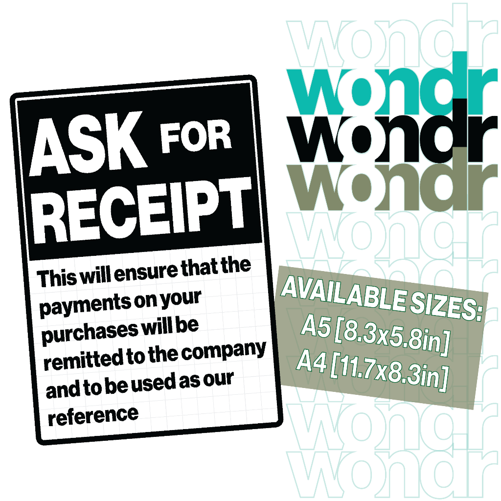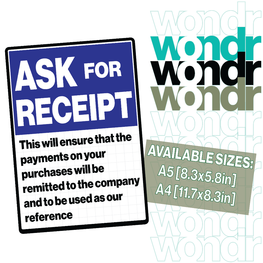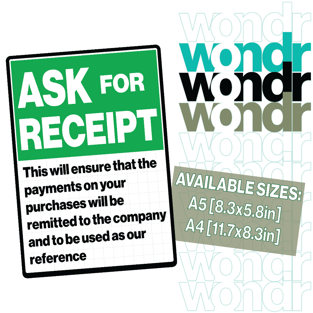 Ask For Receipt Signs For Stores, Restaurant, and Business Stablishments