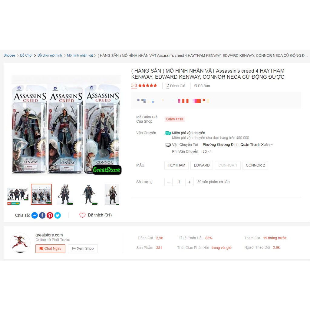 Assassin's creed 4 HAYTHAM KENWAY, EDWARD KENWAY, MOVABLE CONNOR NECA