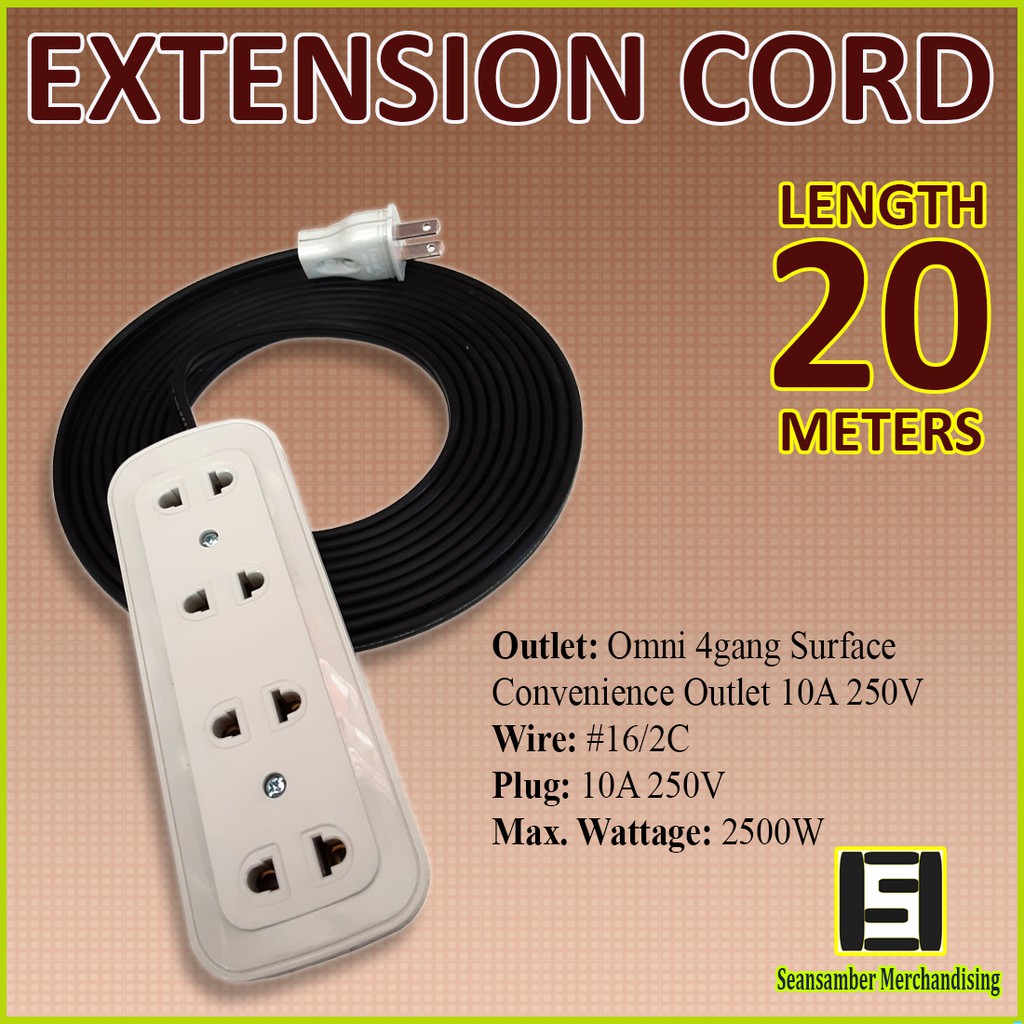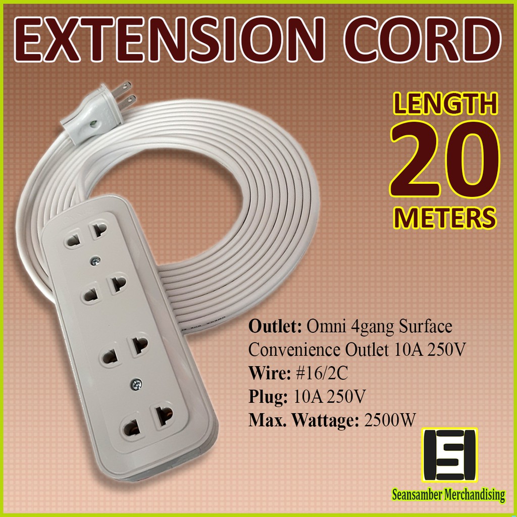 Assembled Extension Cord with Omni 4Gang Convenience Outlet Length 20 Meters