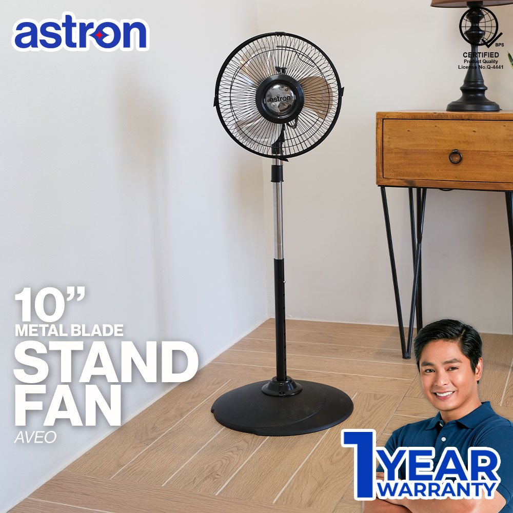 Astron AVEO Stand Fan with 10" Metal Blade - Black | Electric Fan | Compact Design | Industrial