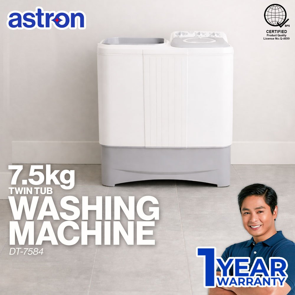 Astron DT7584 Twin Tub Washing Machine - Gray | 7.5kg | Wash & Dry | Heavy Duty