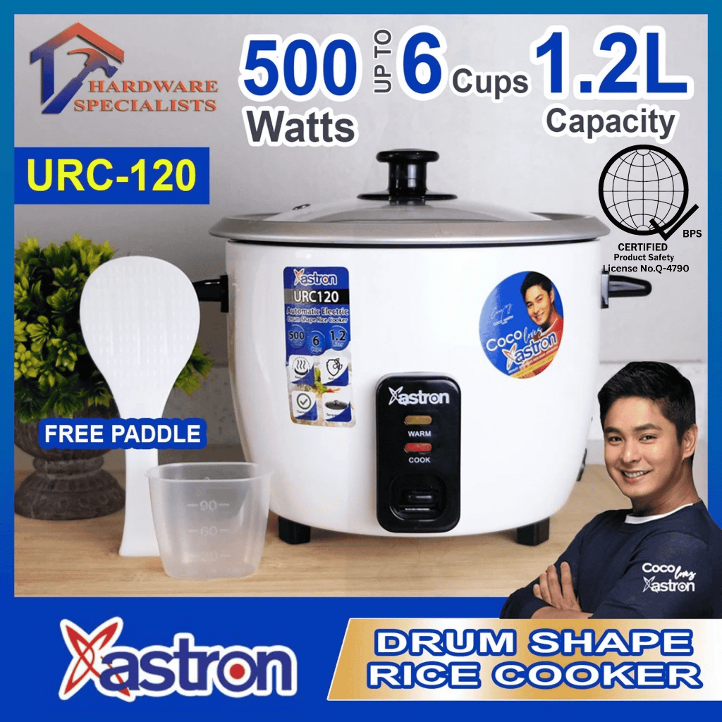 Astron Drum Shape Rice Cooker 1.2L 500W 6 Cups URC-120 WHITE, BLACK or GRAY