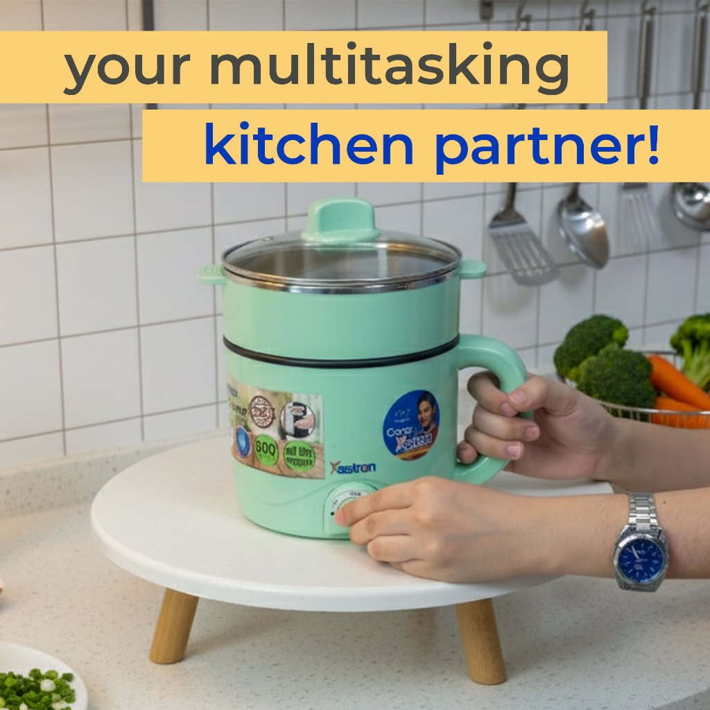 Astron Multi-Cooker & Pot Steamer - Pastel Green | 1.5L Capacity | 600W | Non-Stick Teflon