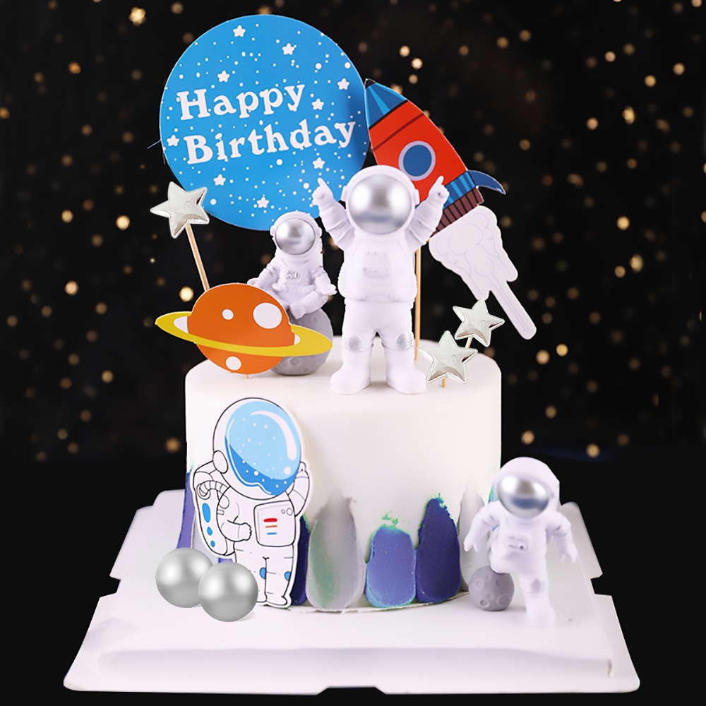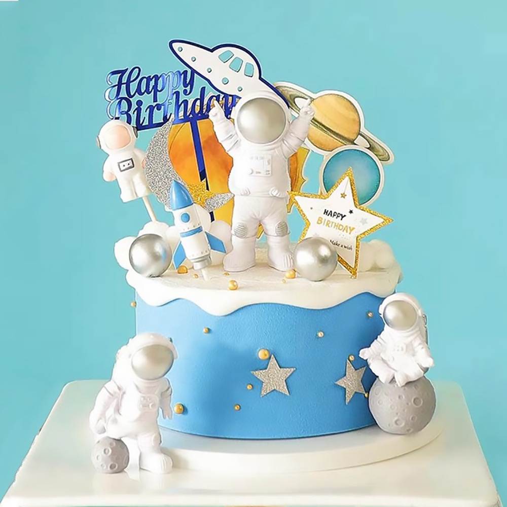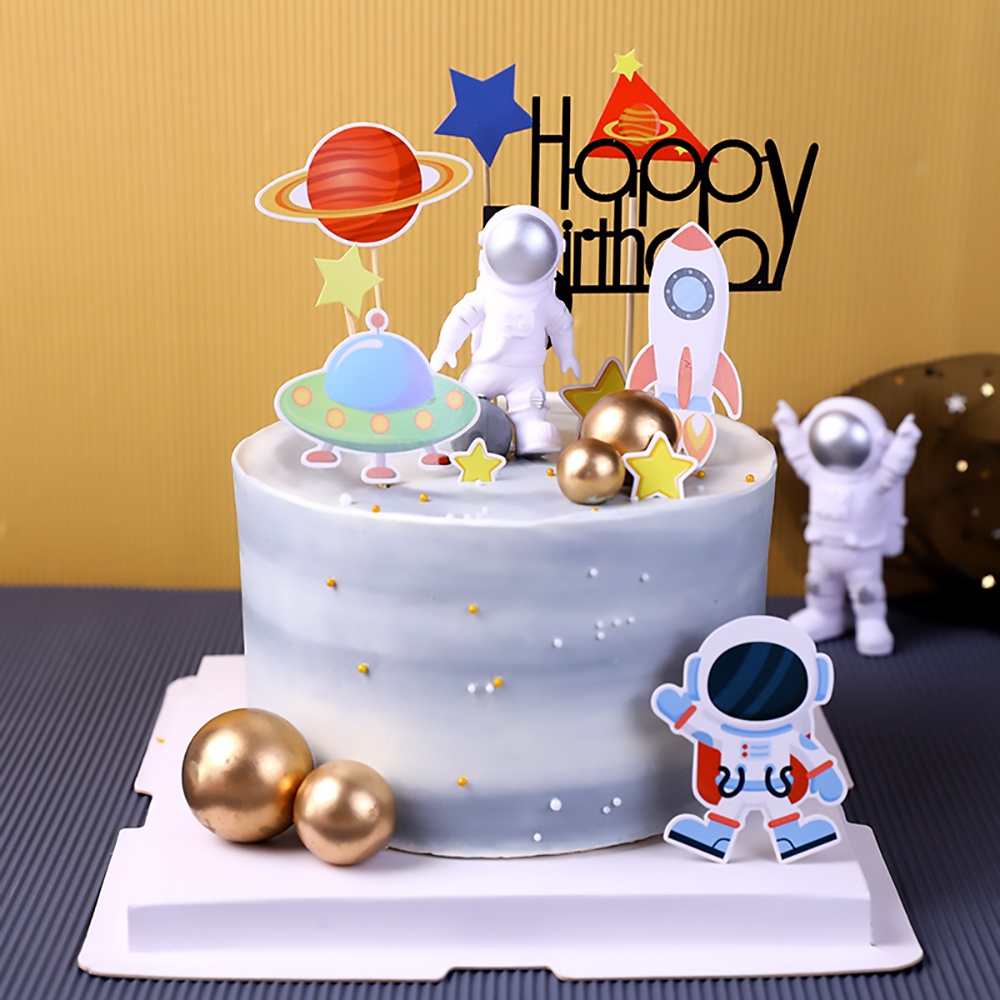 Astronaut Cake Topper For Outer Space Theme Birthday Party Dessert Props Festive Decor Universe Planet Series Cake Topper