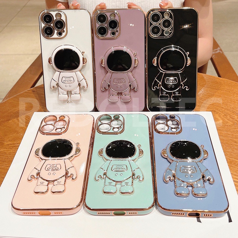Astronaut Case Itel A50 2024 New 6D Plating Casing ItelA50 Itel A 50 Cosmic Spaceman Silicone Soft Phone Cover With Stand Holder