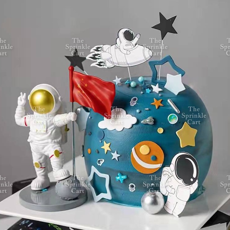 Astronaut Figurine Aviation Rocket Cupcake Decorations for Outer Space Planet Theme Birthday Party