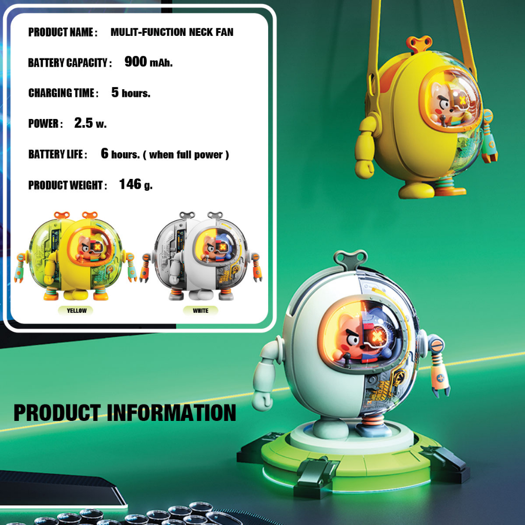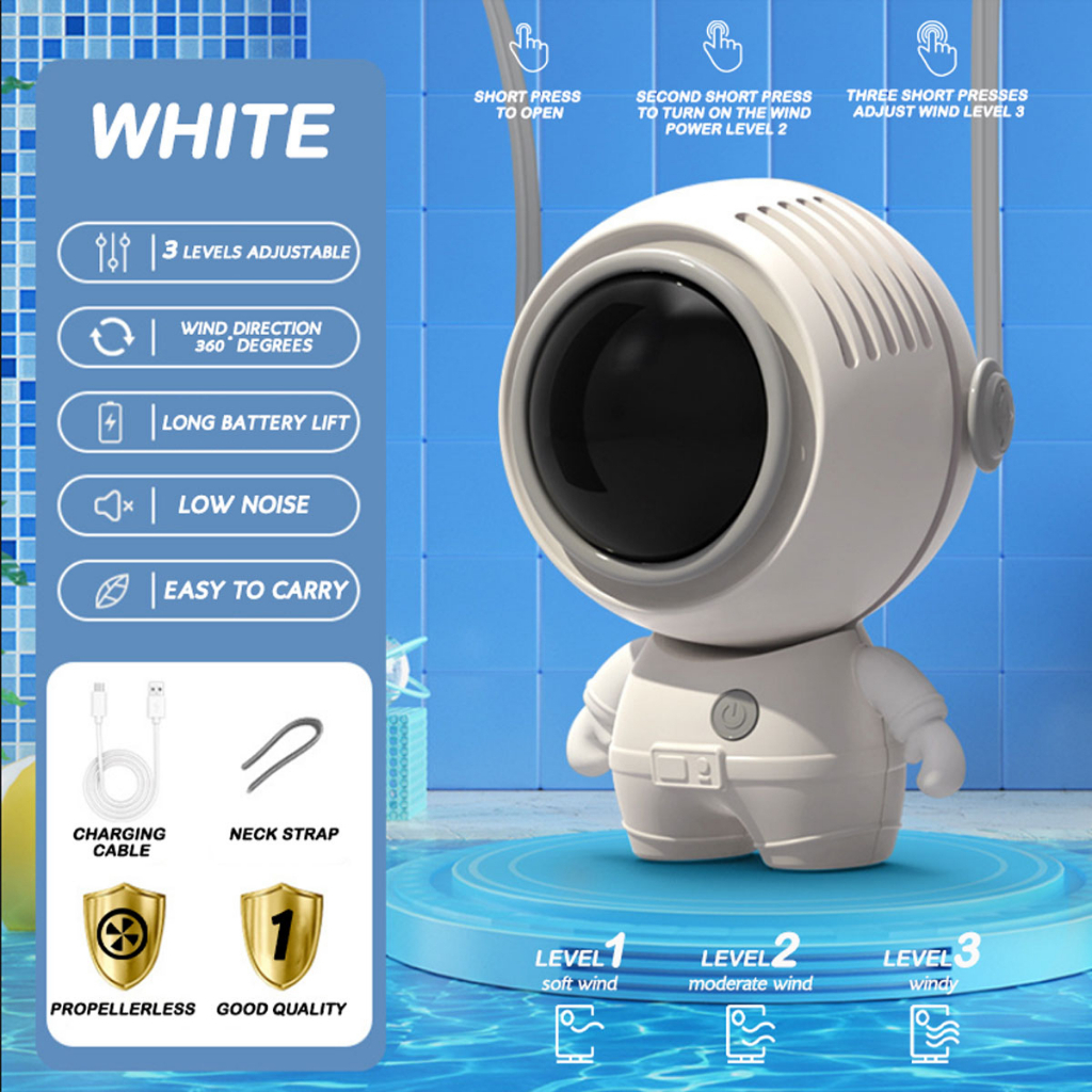 Astronaut Mecha Air Cooling Fan Portable Quiet Hand-held Fan USB Rechargeable 900mAh Hanging Neck