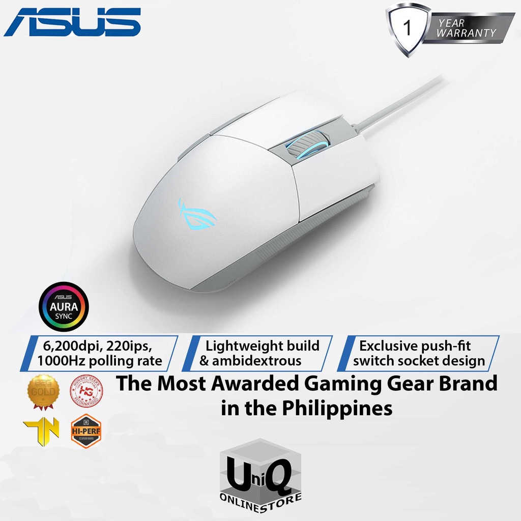 Asus ROG Strix Impact II Moonlight White Gaming Mouse with Ambidextrous style