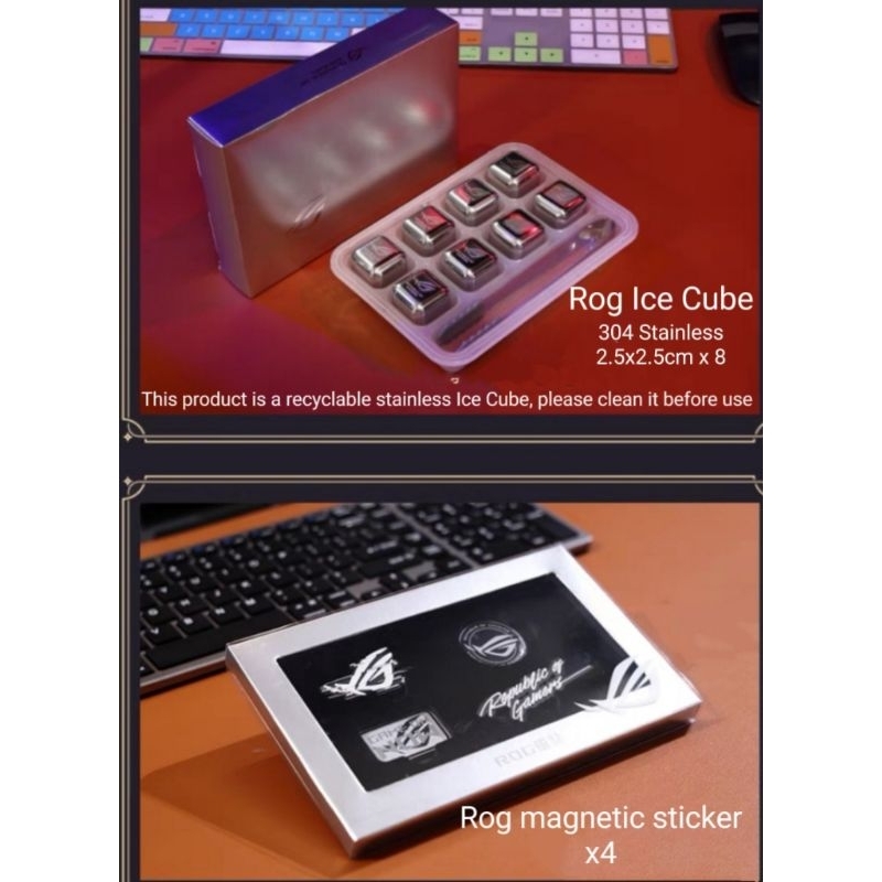 Asus Rog Supreme Gift Box Ultimate Fan Collection Ice Cube Sleeves Magnet Patch Sticker Playing Card