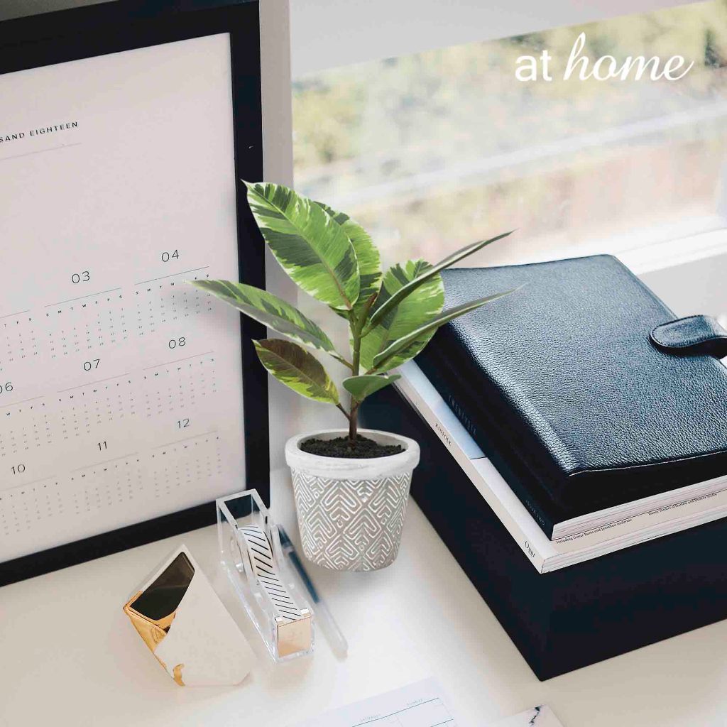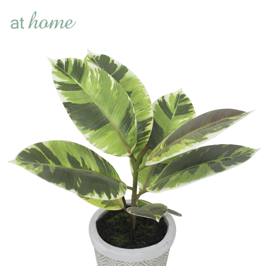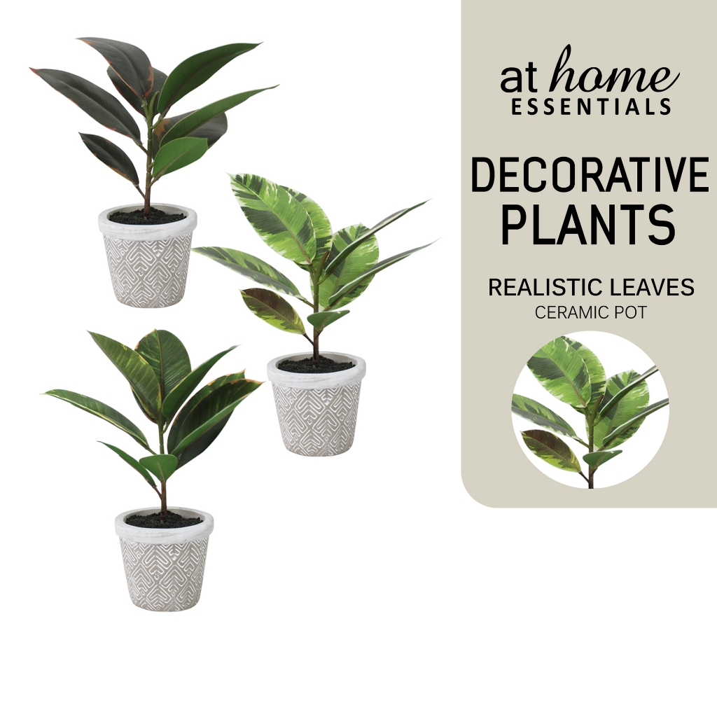 AT HOME Decor Essential Cael Artificial Rubber Tree Plant Ceramic Potted — Decorative Plant