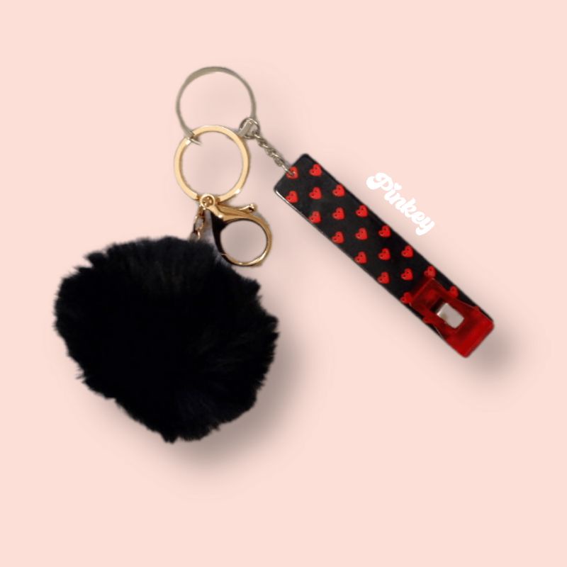 Atm Credit Card Card Grabber Puller Keychain with Pompom For Long Nails