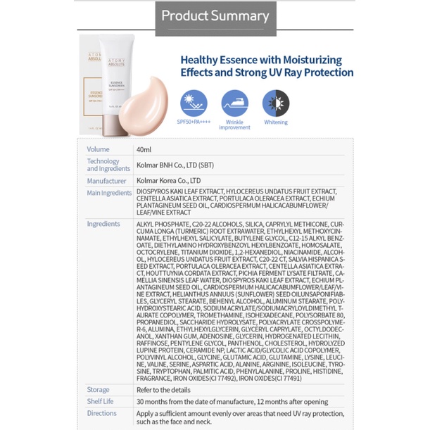 Atomy Atomy Clearing Absolute Essence Sun Ultraviolet Protective Cream SPF50++++