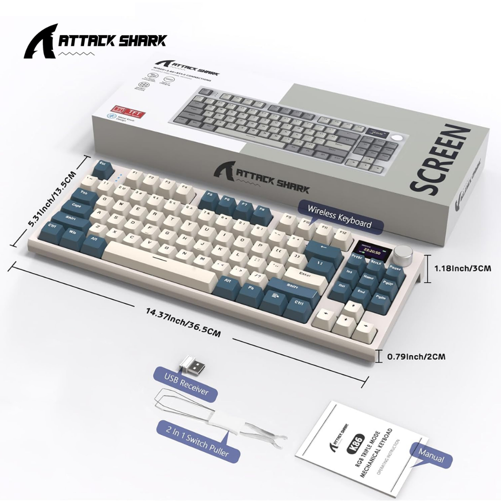Attack Shark K86 75% Mechanical Keyboard Tri-Mode Hot-Swappable OLED Display