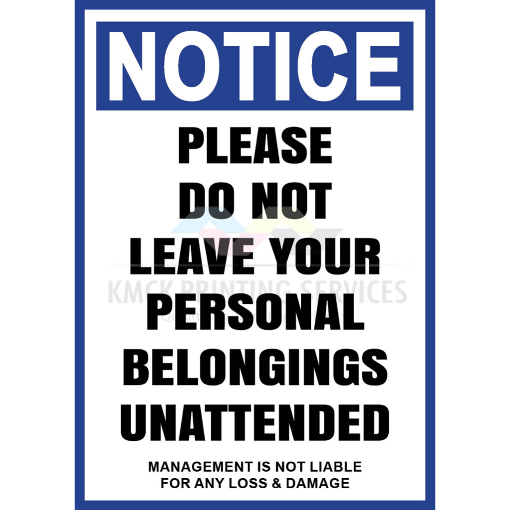 Attention Do Not Leave Your Belongings Unattended Signages
