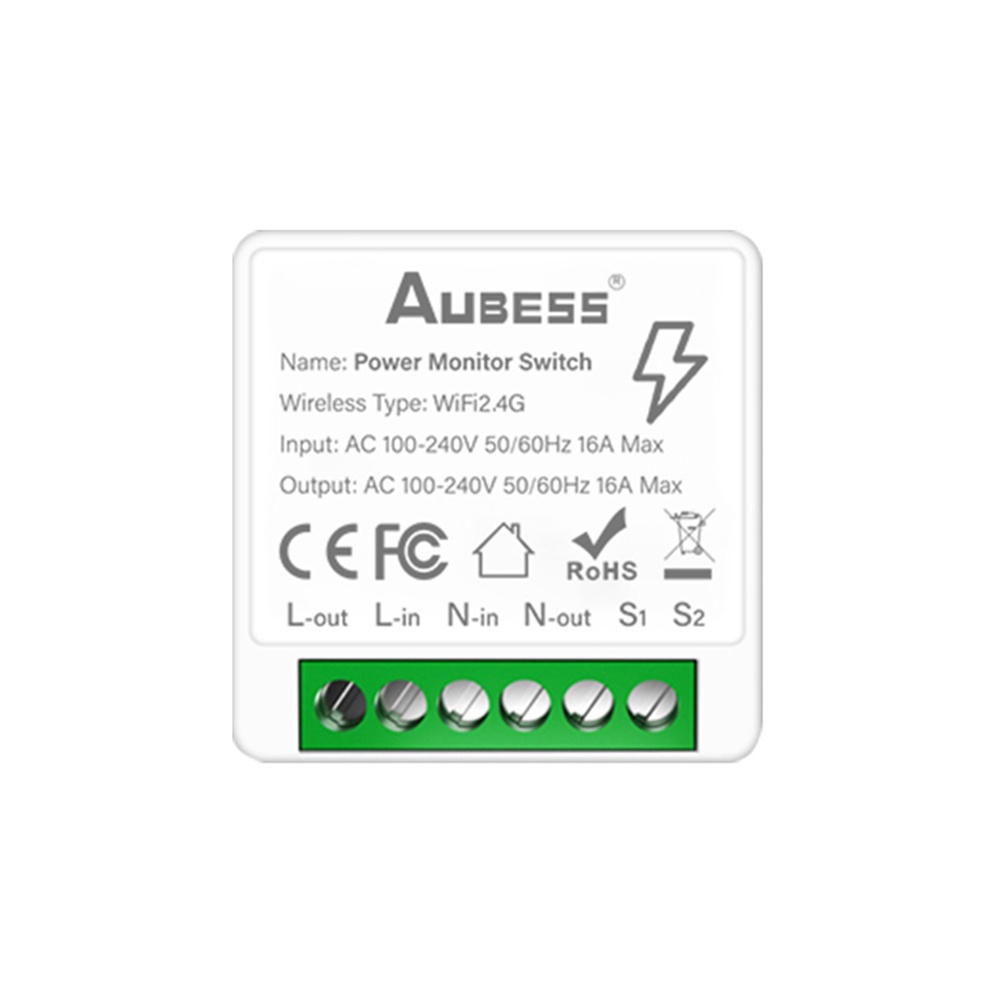 Aubess Tuya Wifi Mini Smart Energy Monitor Switch Module 16a Support 2-way Control Timer Wireless Switch Smart Home Automation qualityy