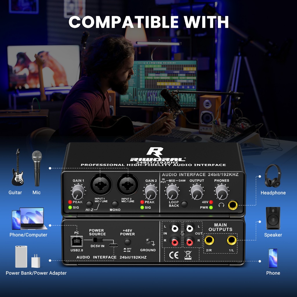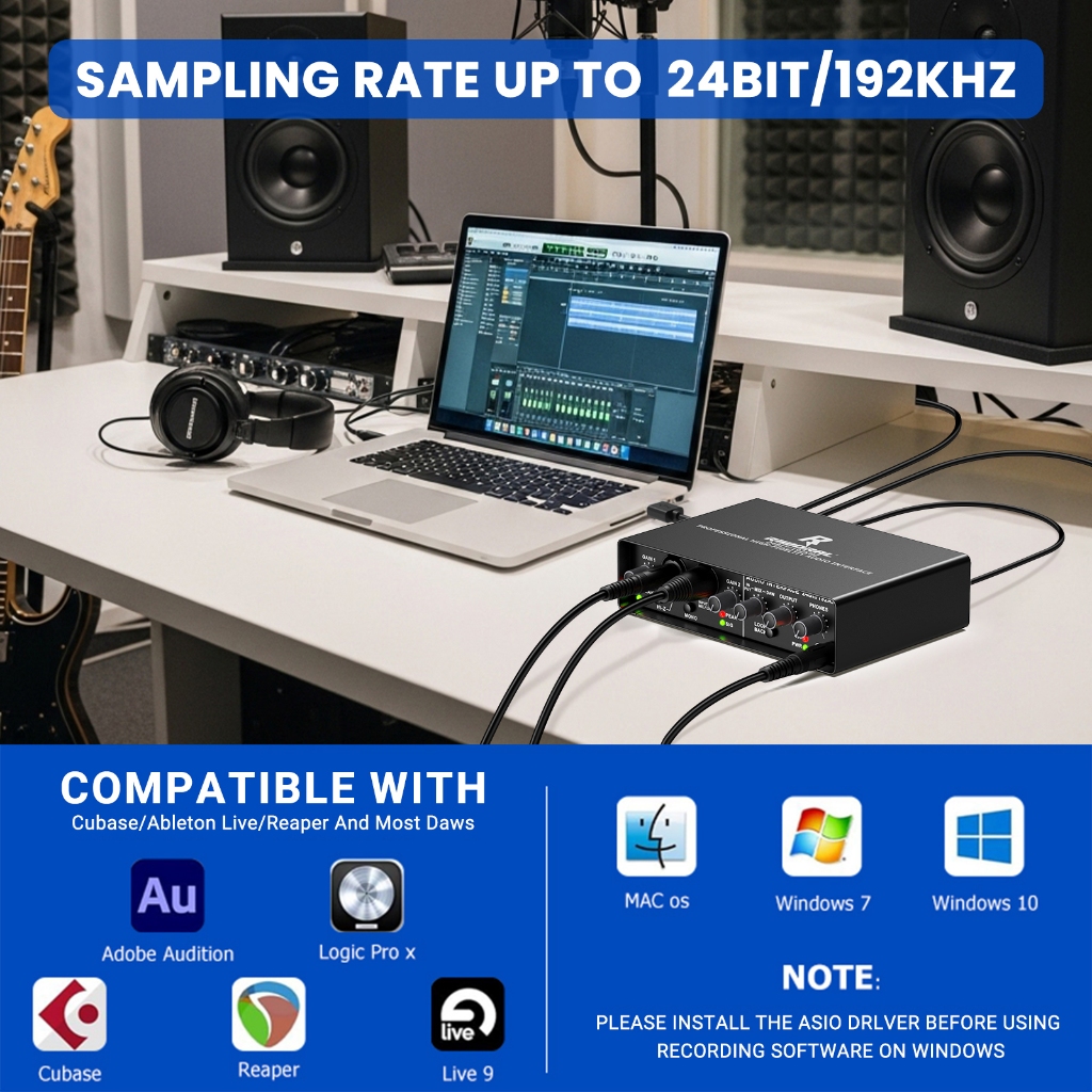 Audio Interface 24Bit/96kHz Used for Pc With XlR / 1/4 Inch Jack 2 Channel Audio Interface Recording