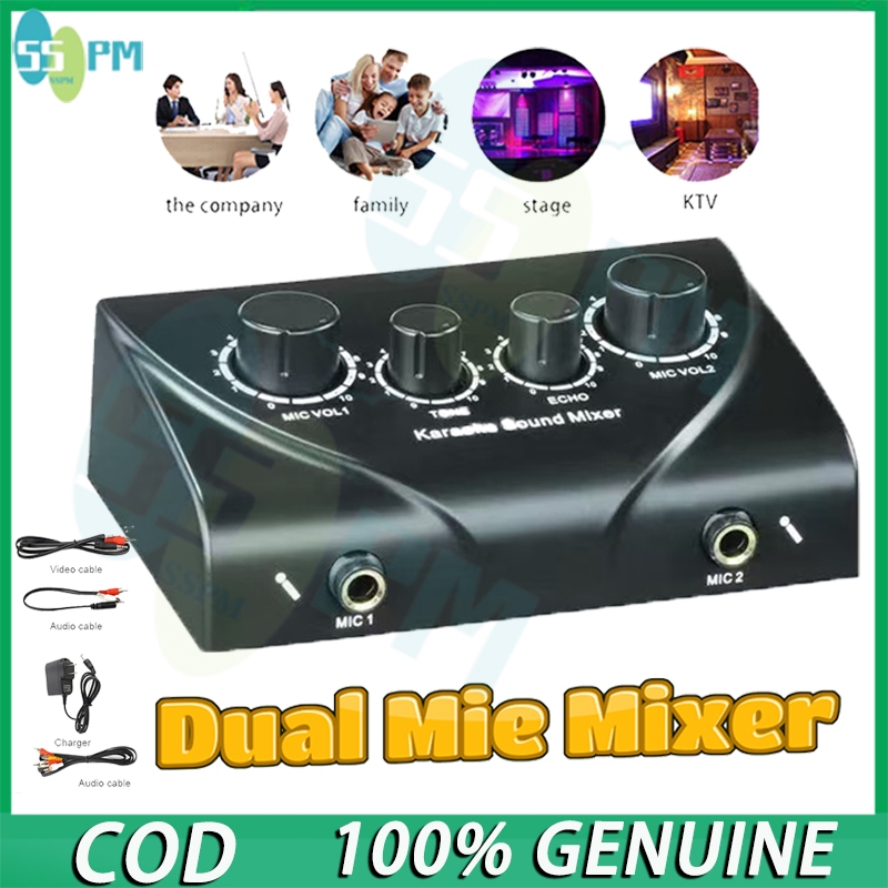 Audio Mixer Amplifier Portable Dual Mic Inputs For Amplifier & Microphone Karaoke Echo Mixer