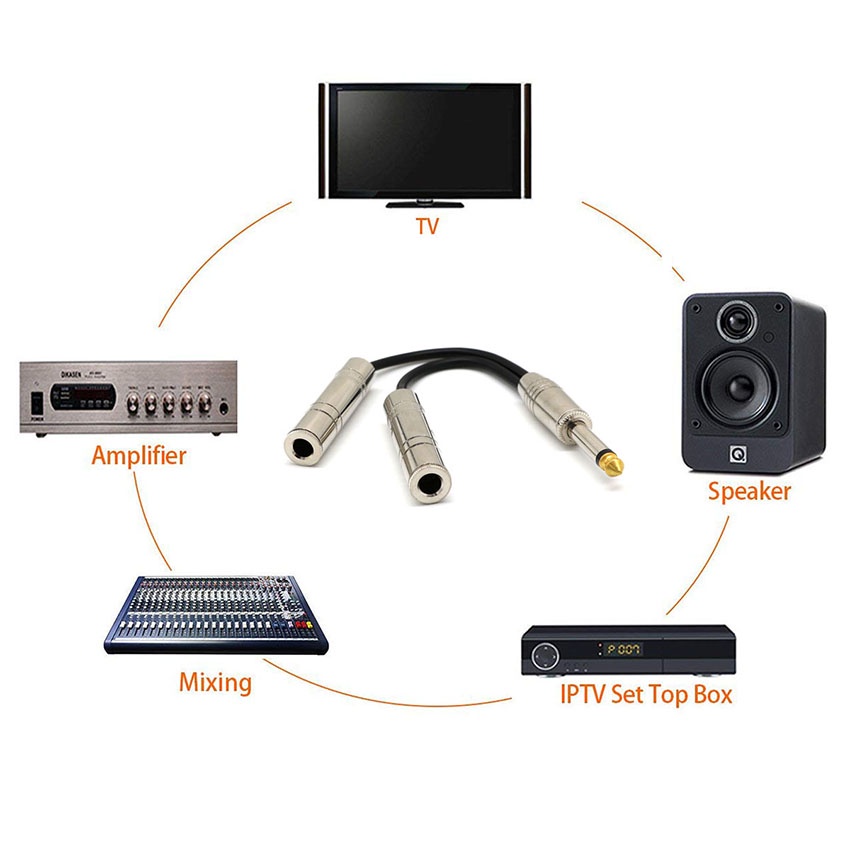 Audio Y Splitter Cable 6.35mm Stereo Audio Male To 2 Female Headset Mic Y Splitter Cable Adapter