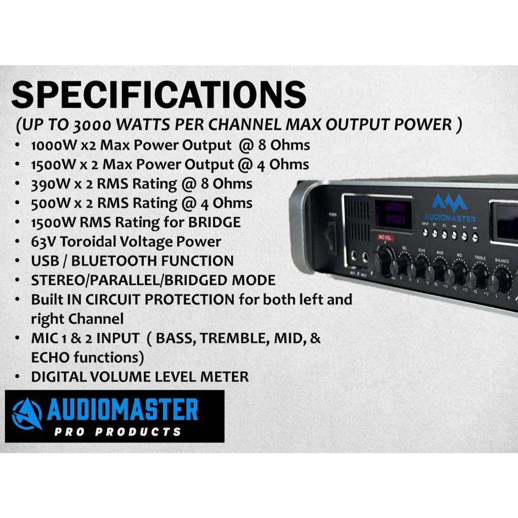 Audiomaster T-3000 Professional Power Amplifier Stereo Karaoke Amplifier