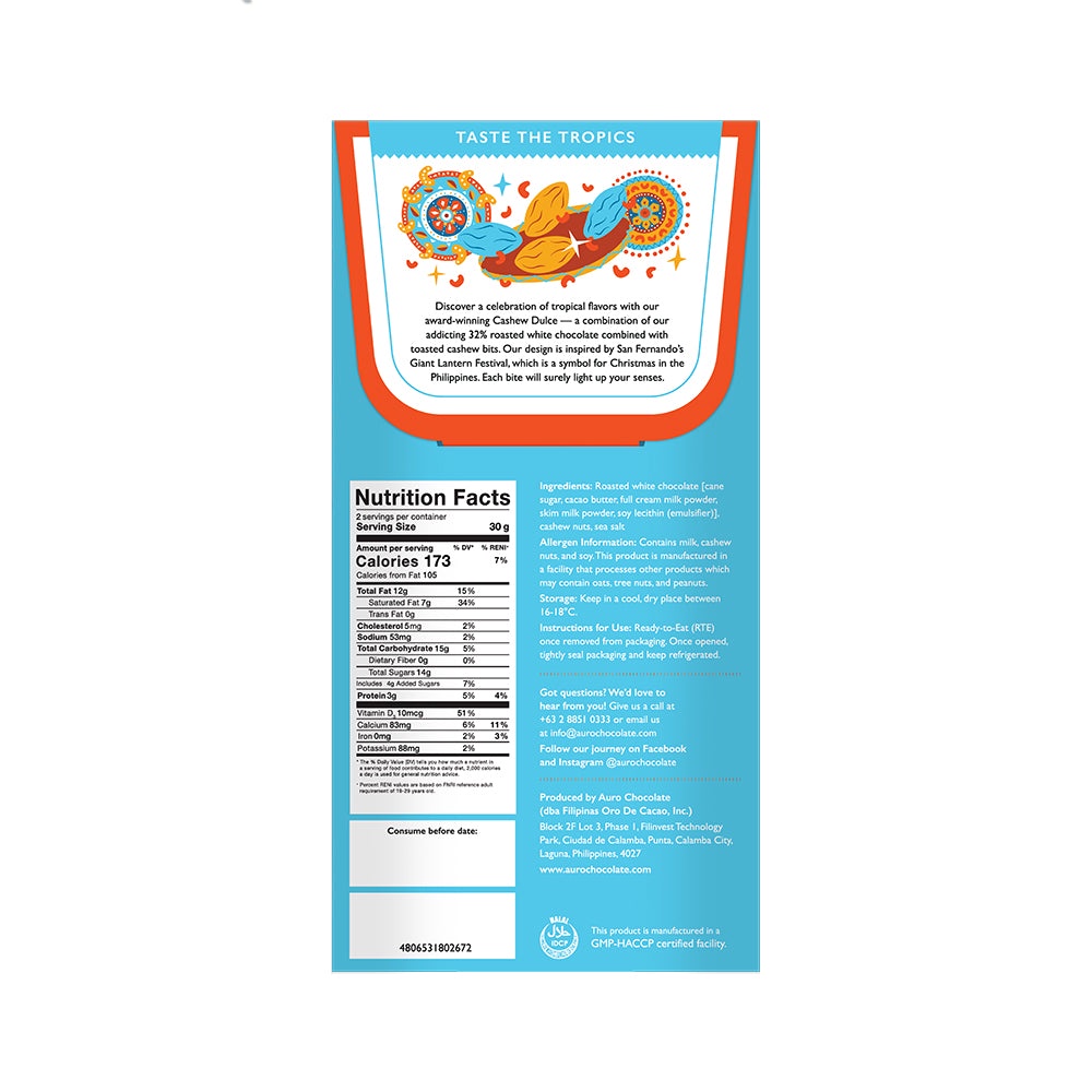 Auro Chocolate Cashew Dulce with 32% Roasted White Chocolate 60G