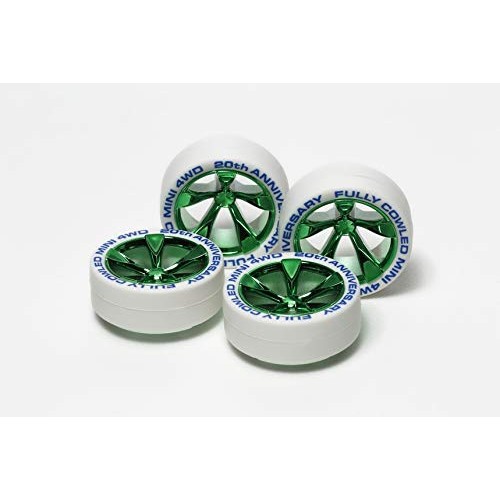 Authentic Mini 4WD parts Full cowl Mini 4WD 20th anniversary white tires & green plated wheels