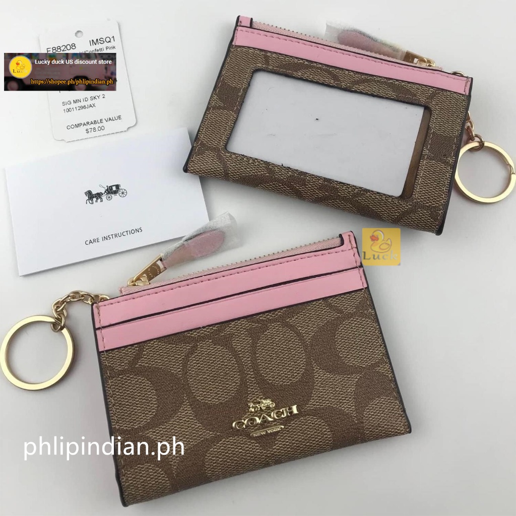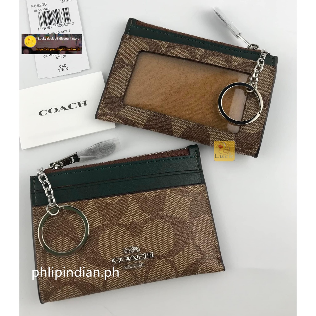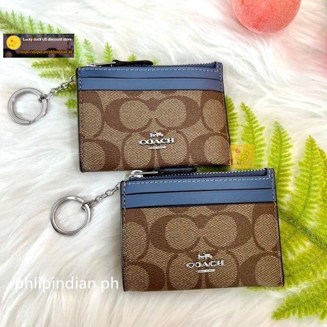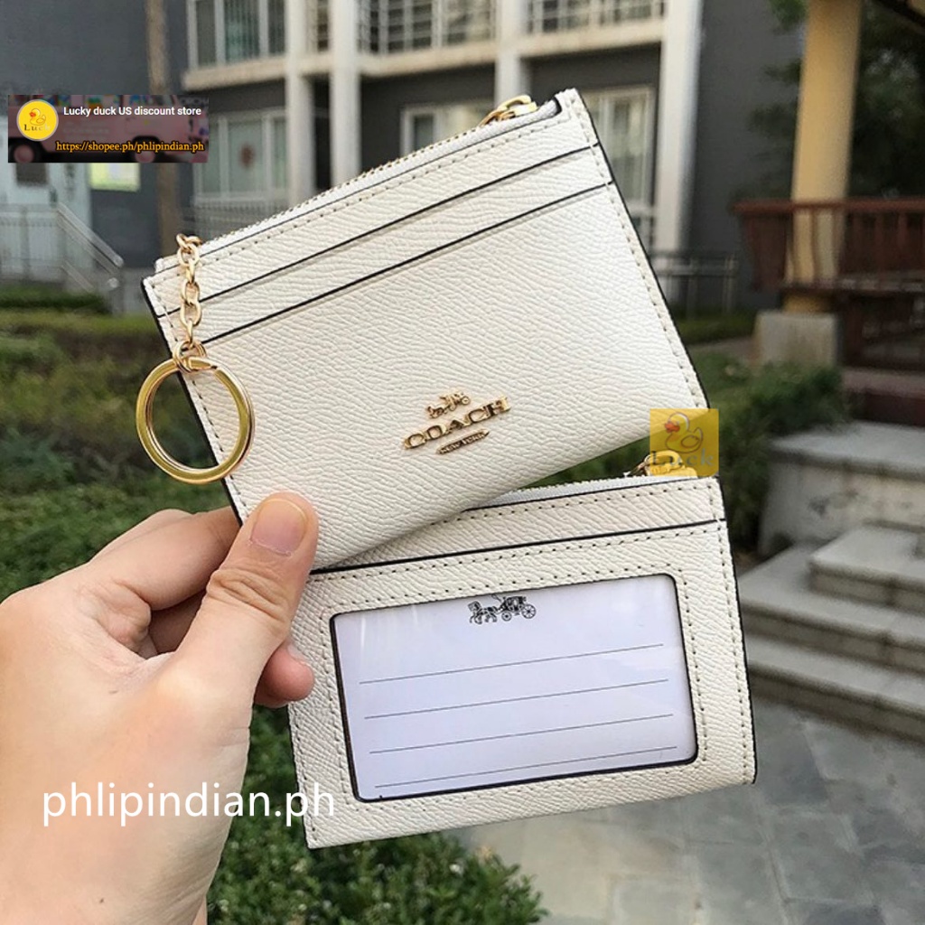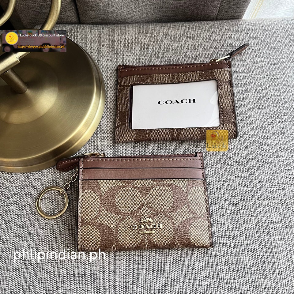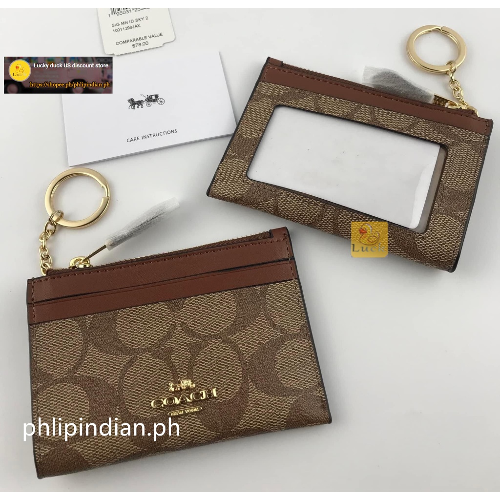 Authentic Mini Skinny ID Case Unisex Card holder coin purse Leather with Attached Split Key Ring