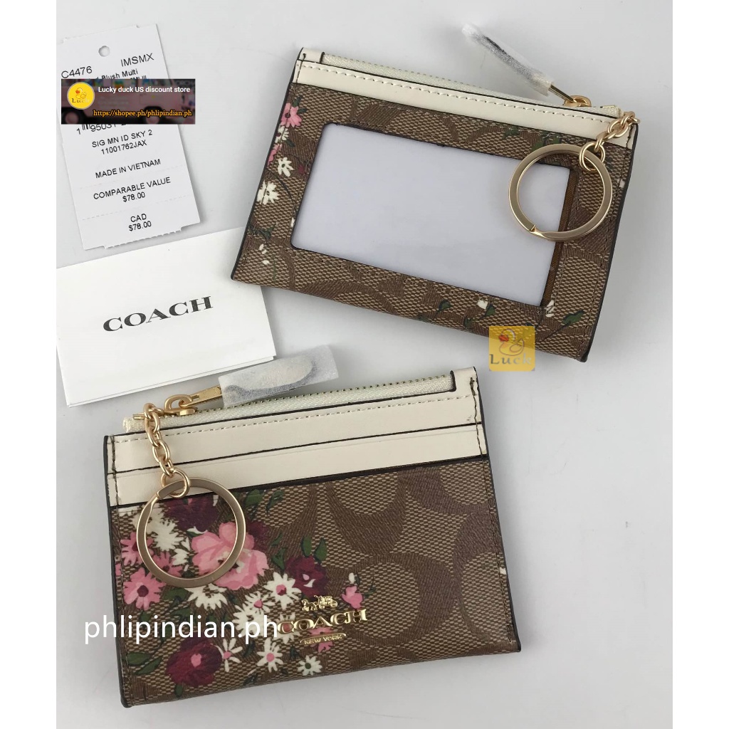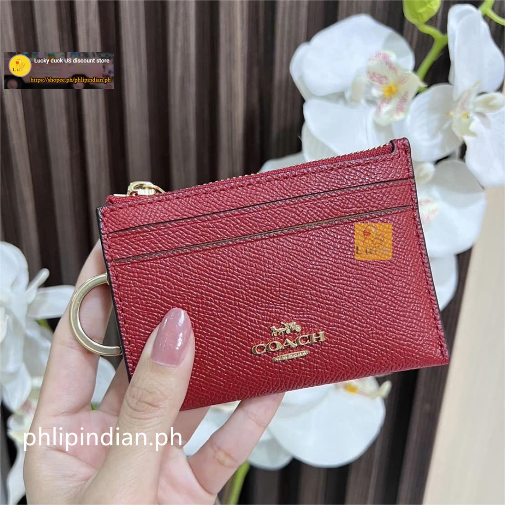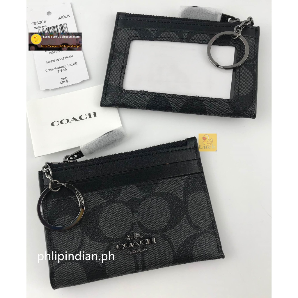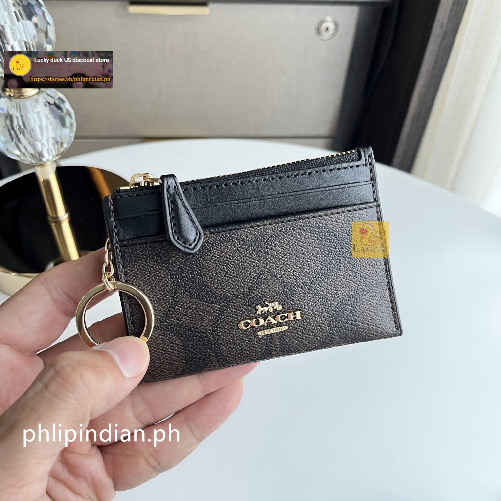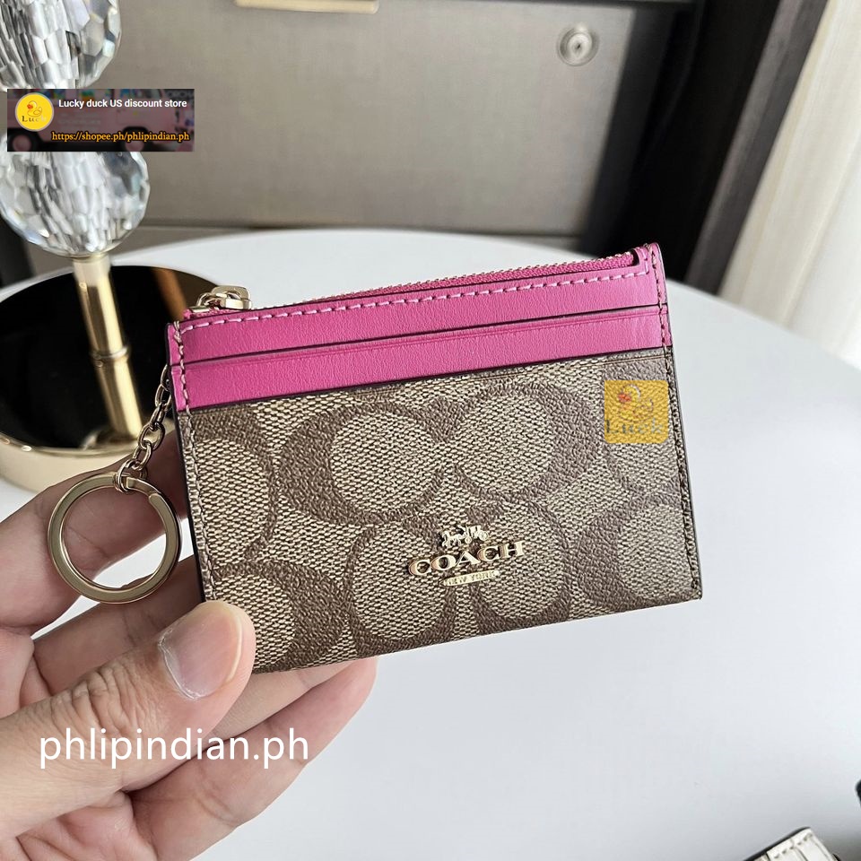 Authentic Mini Skinny ID Case Unisex Card holder coin purse Leather with Attached Split Key Ring