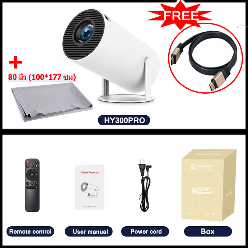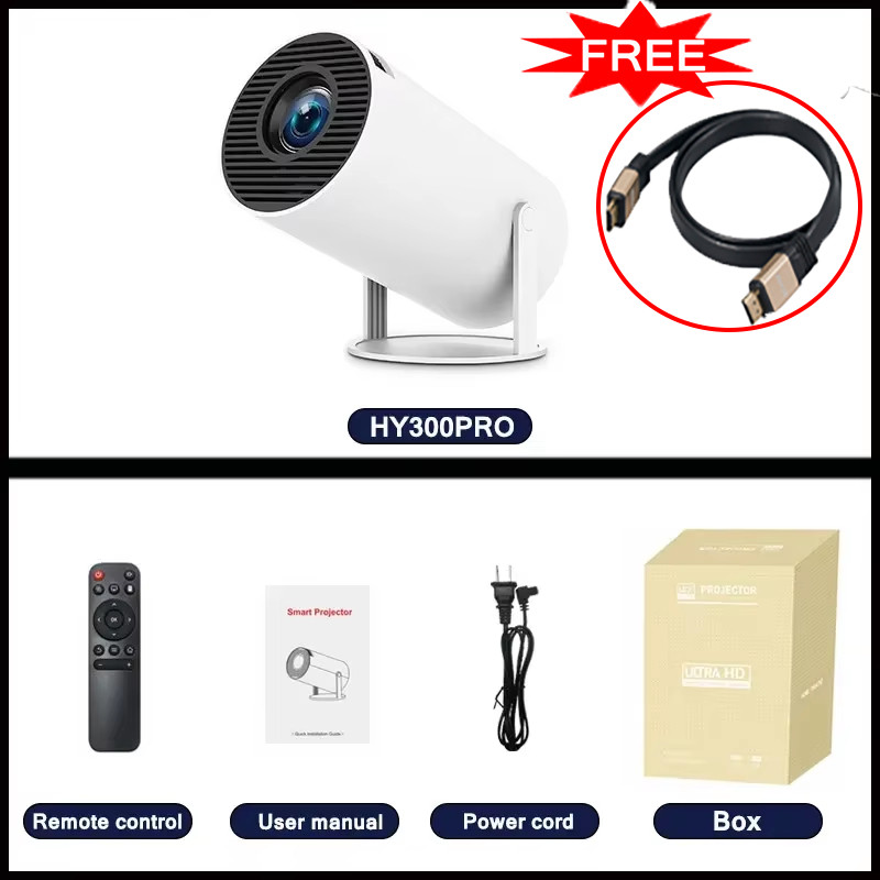 Auto Foucs Projector 1080P Full HD 4K Decoding Home Theater Set Projector HY300 4K Smart Projector | Android 11, 6000 Lumens, 200" Screen, Dual WiFi, BT, HDMI, Home & Outdoor
