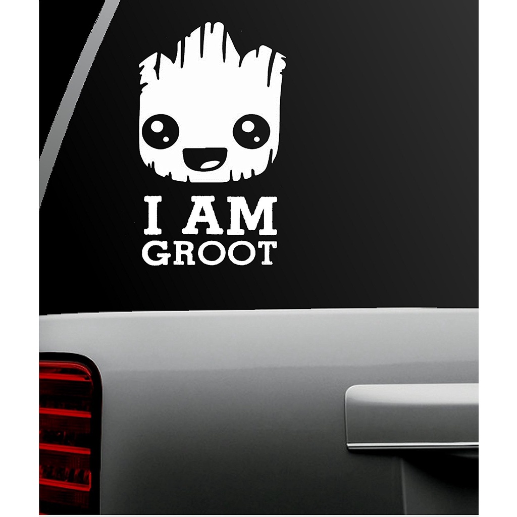 Auto - Sticker - Decal - GROOT - BABY GROOT - I AM GROOT - SMILING - window sticker for car, truck, suv, glass, wall, laptop, computer (I AM GROOT SMILING)
