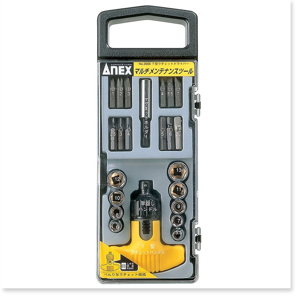 Automatic T-handle and screw bit set T10, T20, T25, T30, adapter, H2.5, H3, H4, H5, H6, ANEX