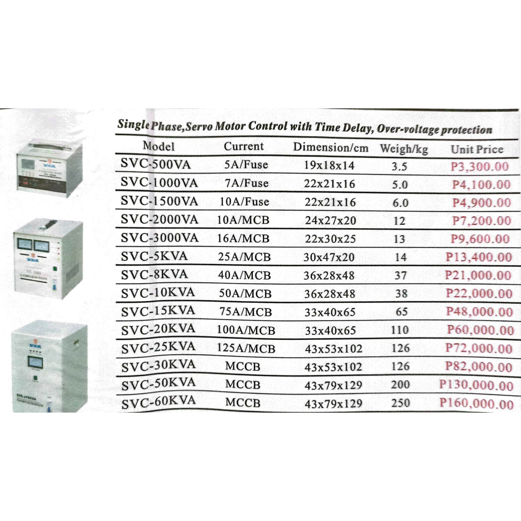 Automatic Voltage Regulator AVR SVC-1500VA Single Phase, Servo Motor Control with Time Delay WIXIM