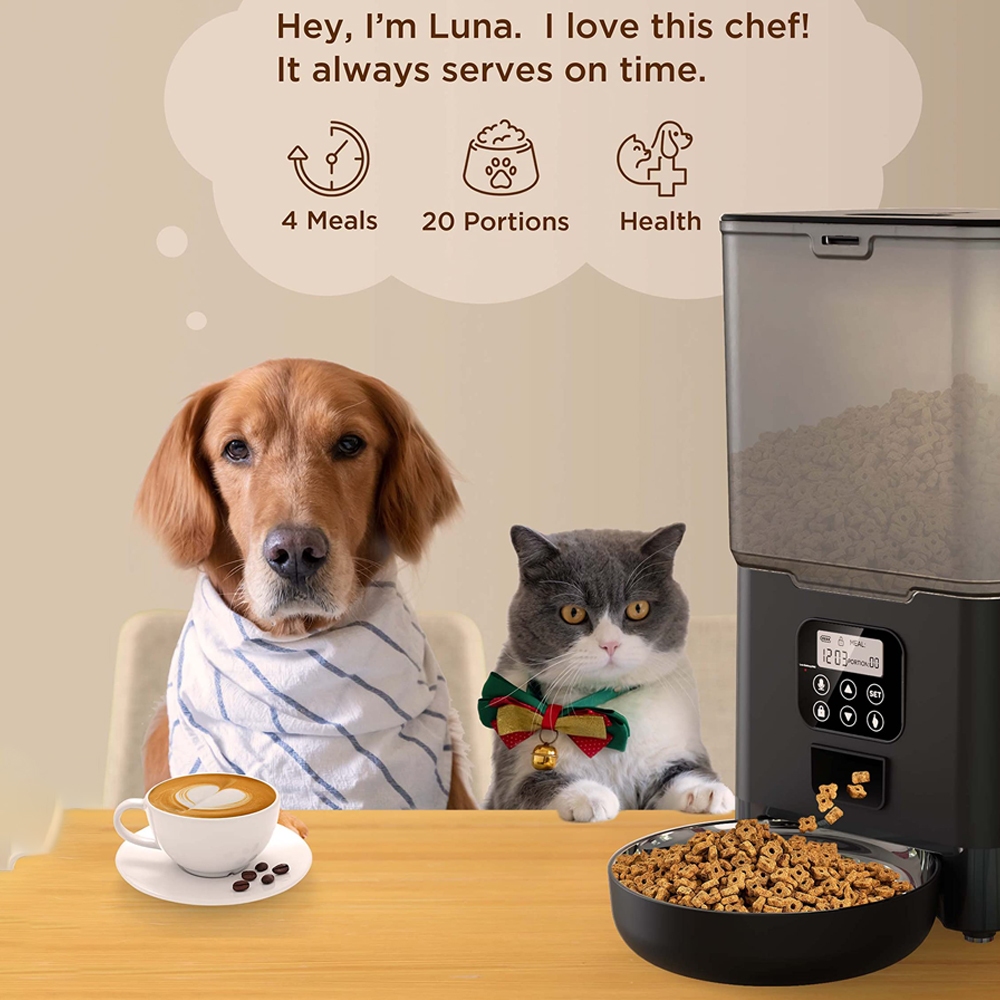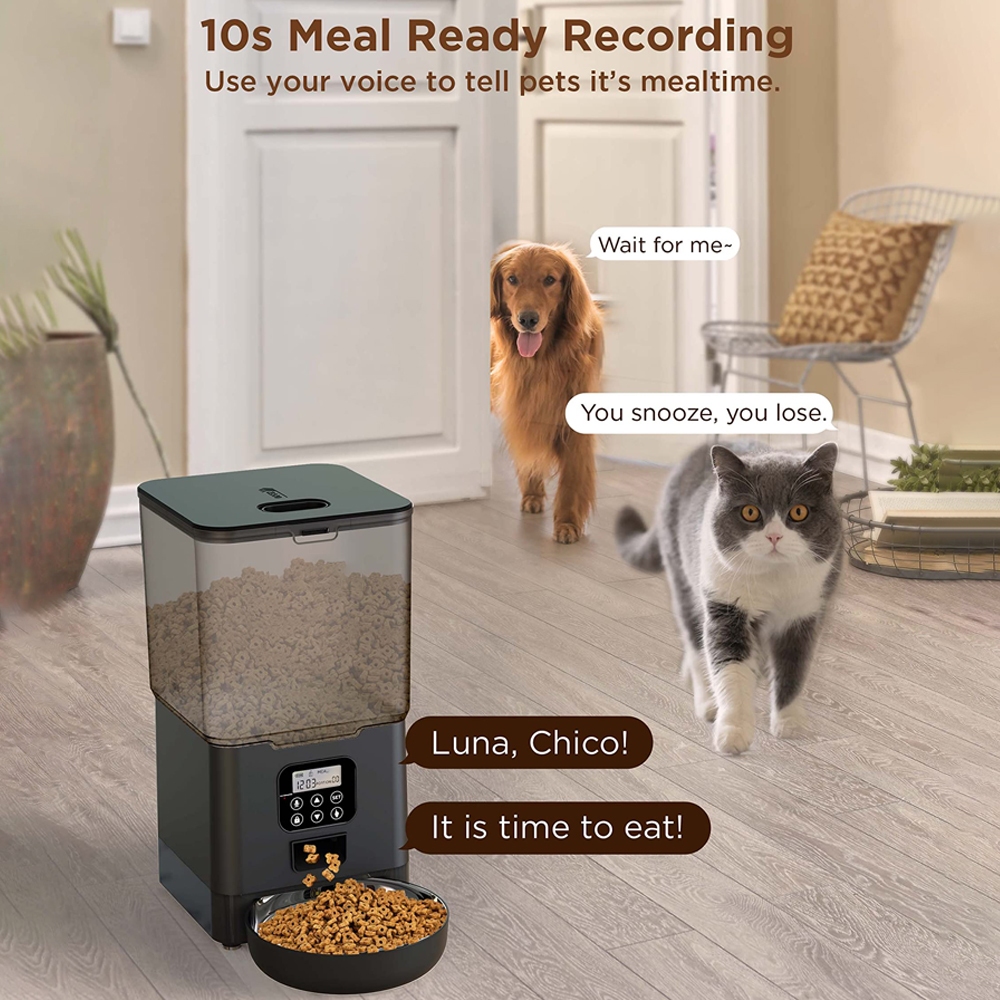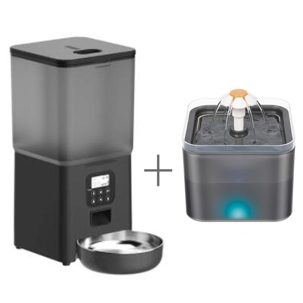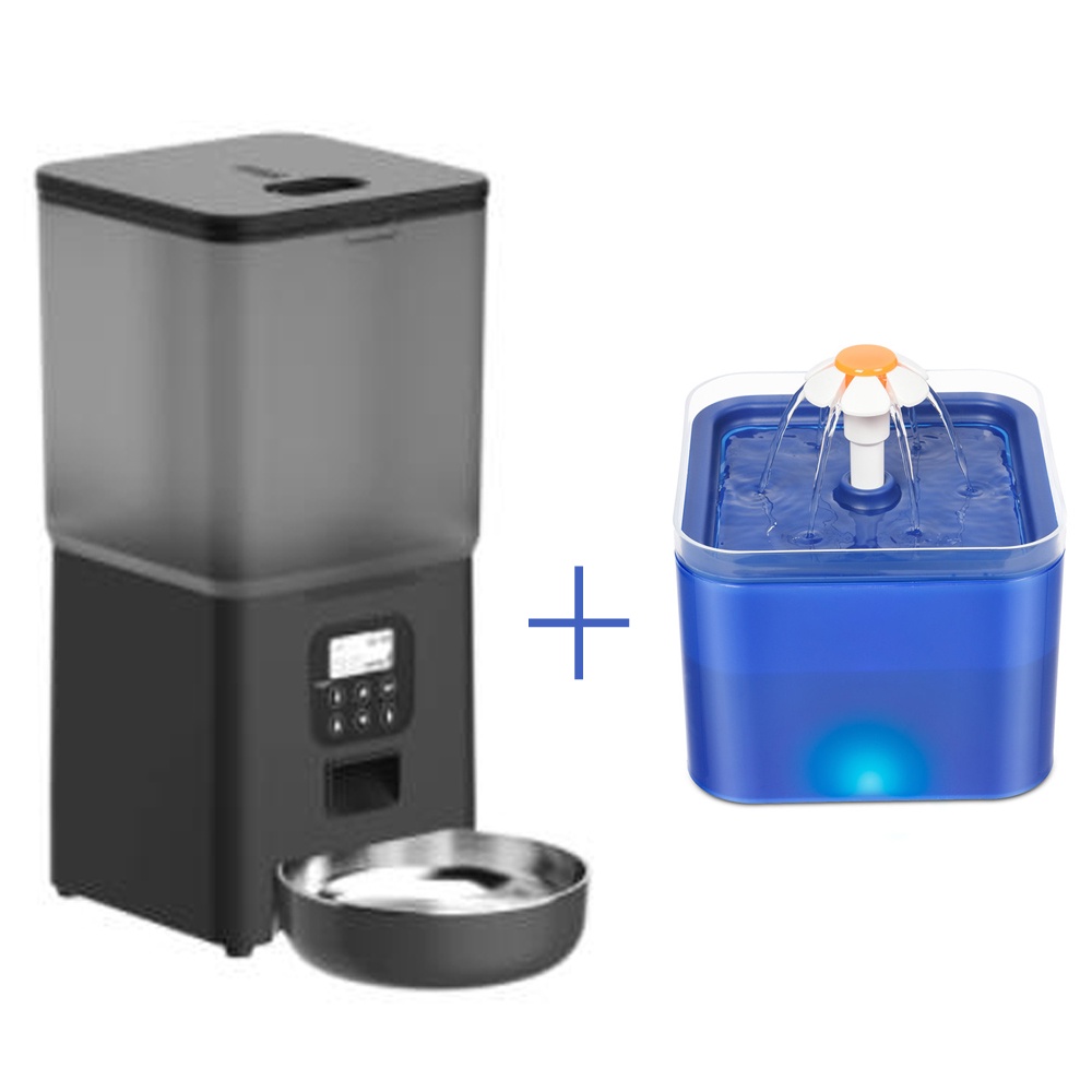 Automatic cat feeder plus automatic cat waterer combo, 6L pet feeder and 2L pet waterer, automatic dog and cat feeder, smart dog feeder, suitable for small and medium pet food dispenser, recordable pet feeder