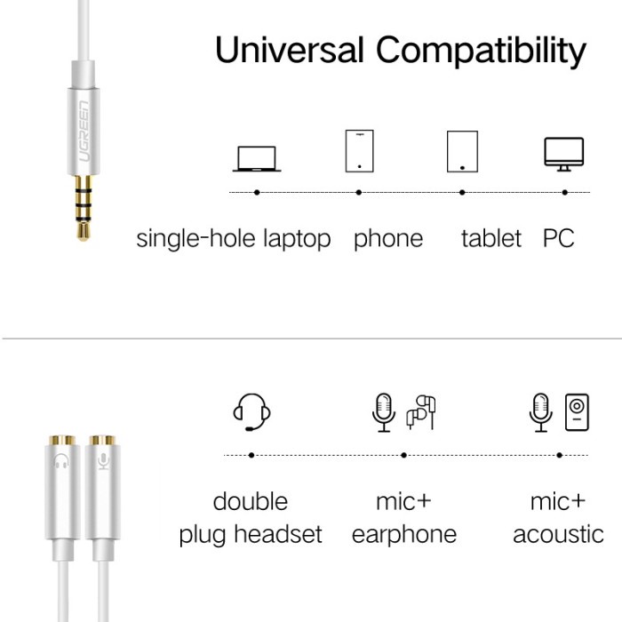 AUX Audio Splitter Cable Y 3.5mm UGREEN Adapter Mic & Earphone