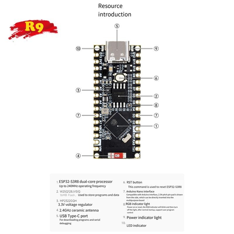 Available ESP32 S3 Nano Development Board ESP32-S3R8 Chip Compatible with for Arduino Nano ESP32 for IoT or Micro-Python Durable
