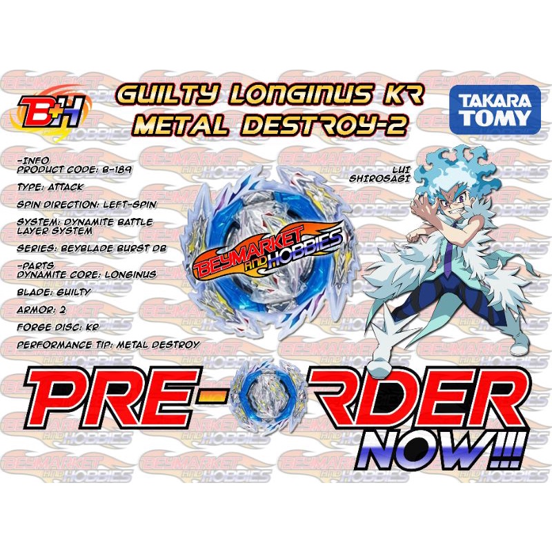 Available Now! Original Takara Tomy Beyblade B-189 Guilty Longinus Karma Metal Destroy-2