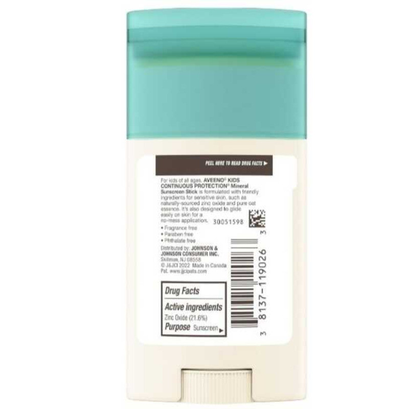 Aveeno Kids Continuous Protection Zinc Oxide Mineral Sunscreen Stick SPF 50, 42G, EXP 2028 8D3