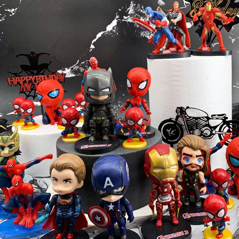 Avengers 6 Pieces/Set Marvel Avengers Alliance Batman Spider Man Iron Man Doll Toy Cake