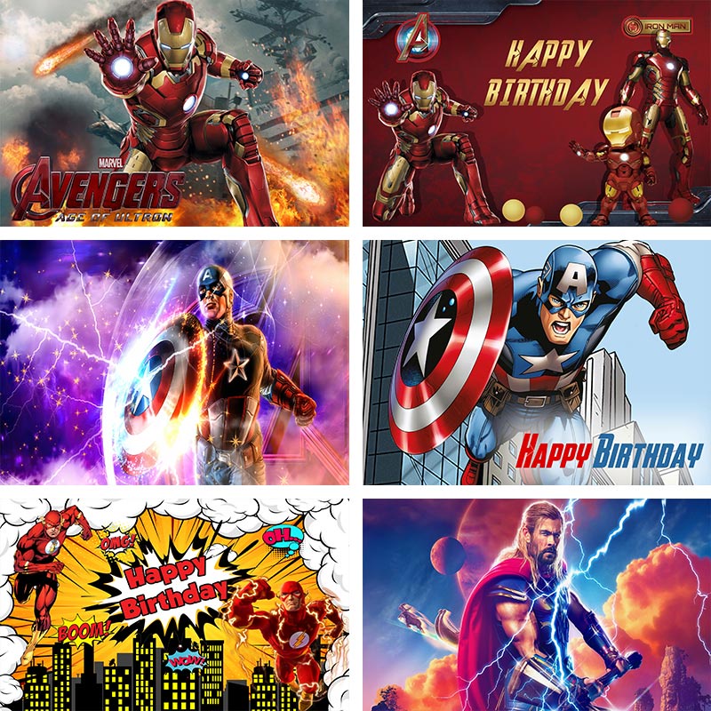Avengers Flash Thor Superhero Birthday Backdrop Photography Baby Shower Kids Children Buildding Background Party