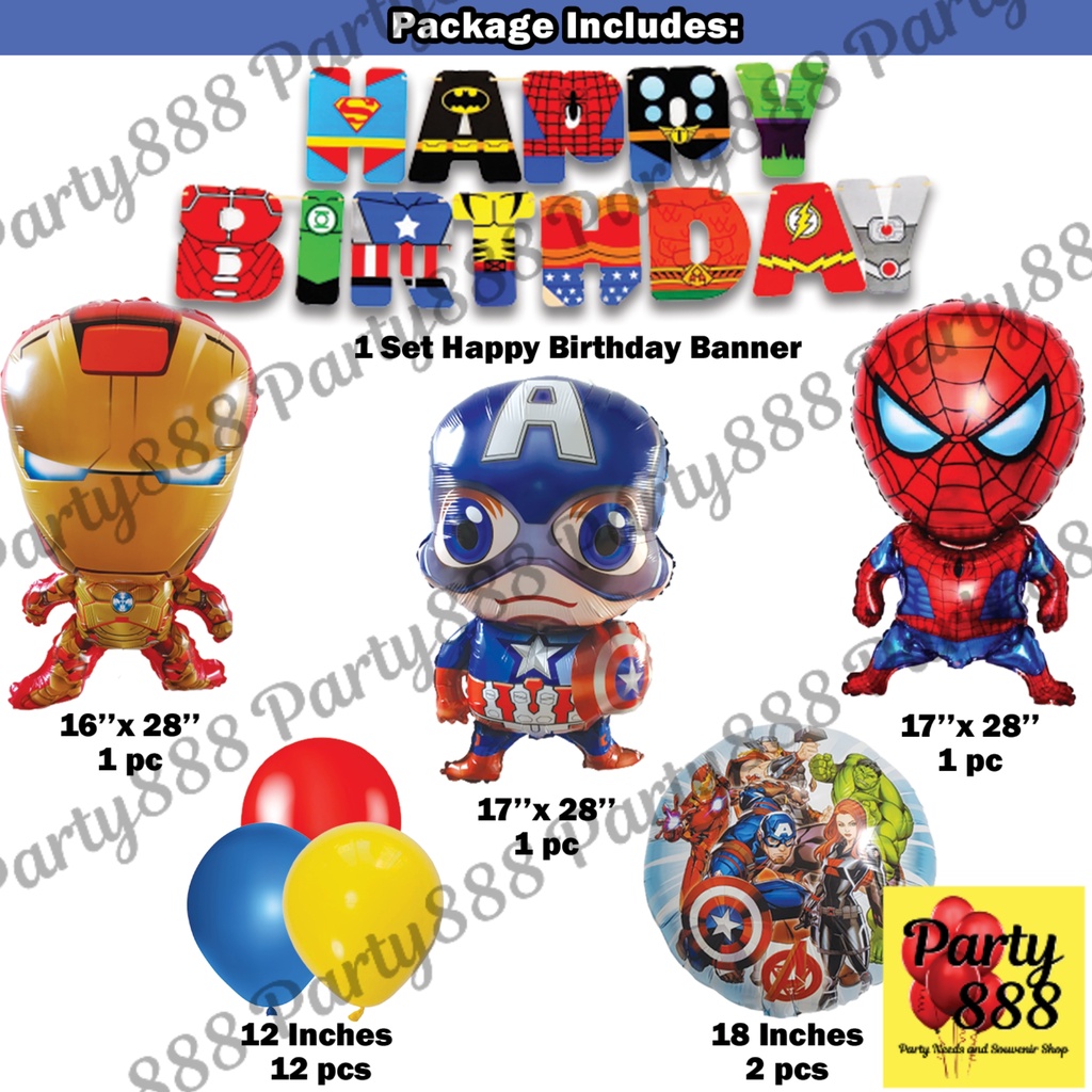 Avengers Happy Birthday party set Avengers characters shaped foil balloons Avengers themed banner