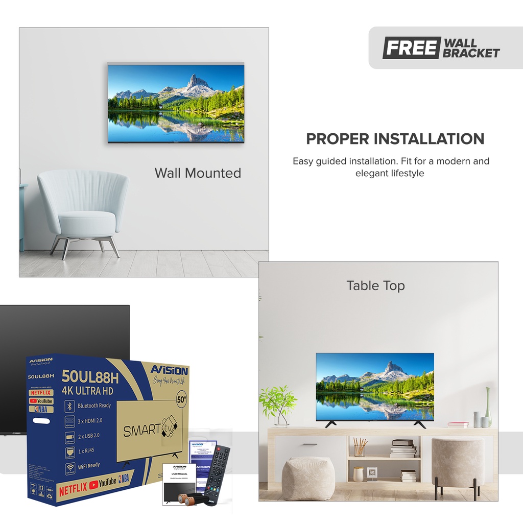 Avision 50 Inch Frameless 4K Smart Digital Bluetooth Led TV w/ Built-in Netflix,Youtube, NBA 50UL88H