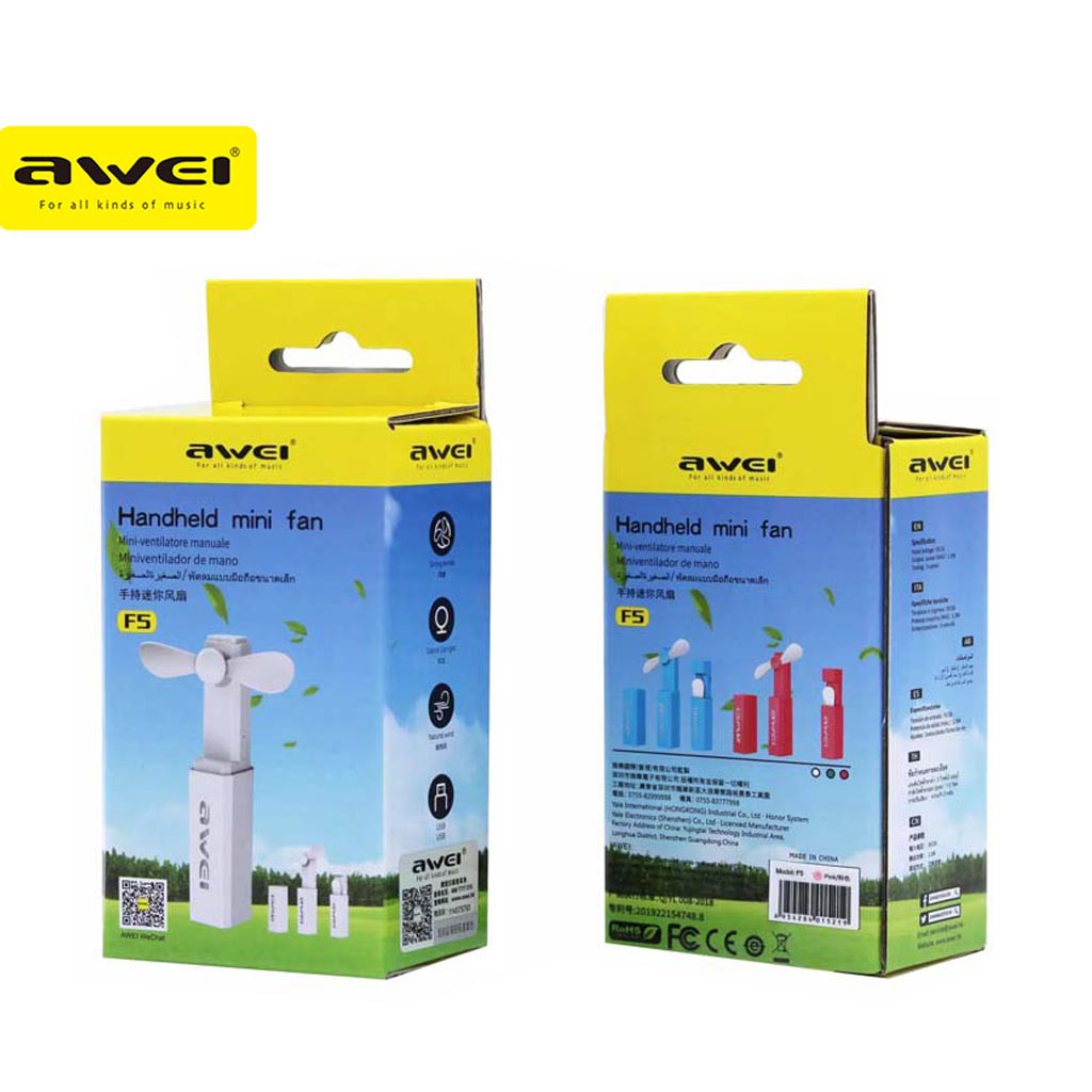 Awei F5 Mini Portable Fan Rechargeable Handheld 3 Wind-Speed