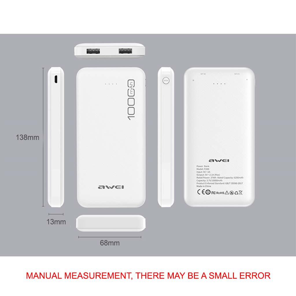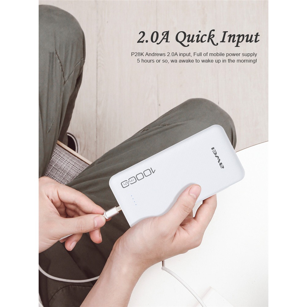 Awei P28K 10000mAh Mini Powerbank 2.1A Super Fast Charging Dual-USB Output Power Bank