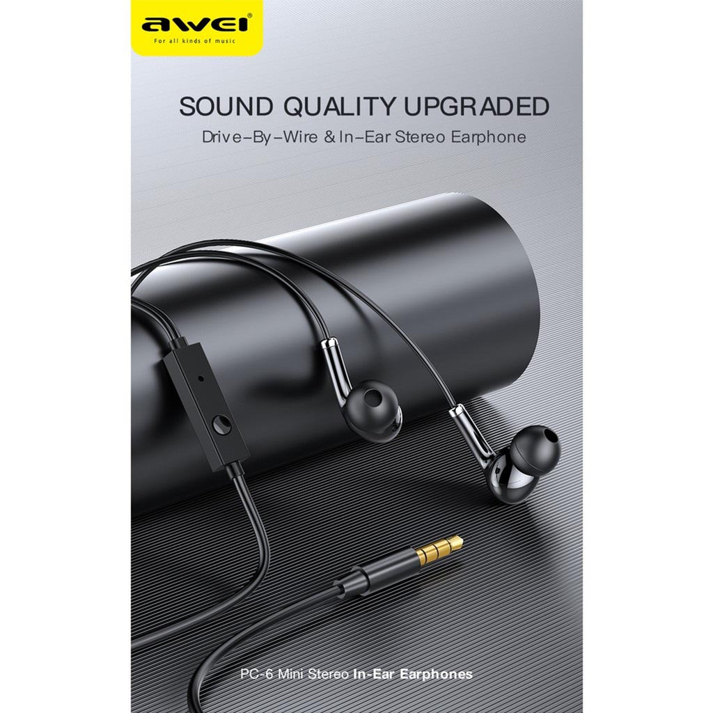 Awei PC-6 Wired Earbuds Noise isolation Earphone In-Ear Earphones Explosive Bass Earbuds With Mic