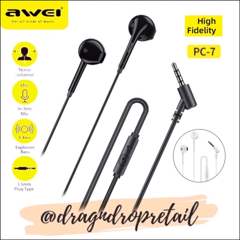 Awei PC-7 Wired In-Ear Earphones 3.5mm Jack Earbuds Stereo Bass Sound Headset With Microphone