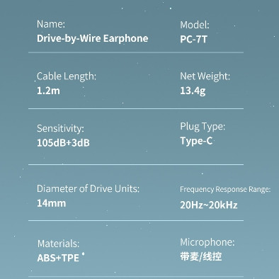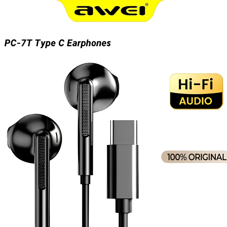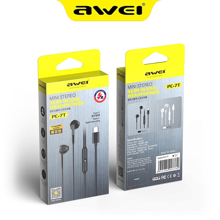 Awei PC-7T Type-C Earphones Original Stereo In-Ear Wired Earbuds In-line Mic