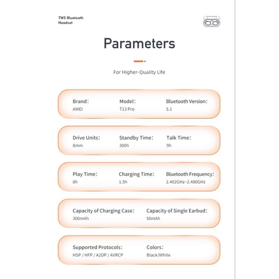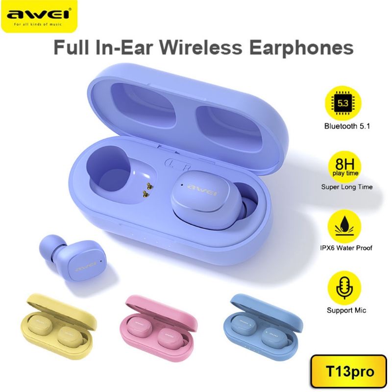 Awei T13 Pro Bluetooth 5.3 Earphones Wireless Earbuds Bass In-Ear TWS Headphones With Mic HiFi