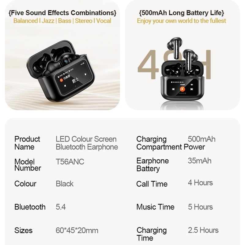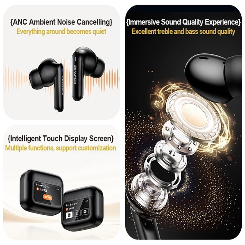 Awei T56 Wireless Bluetooth Earbuds Deep Bass Smart Touch Control TWS Earphones With HD Mic