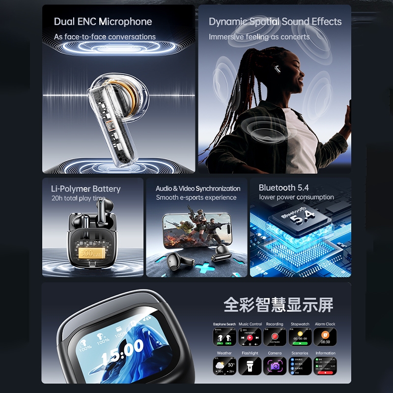 Awei TP100 Bluetooth Earphones With Smart Screen Noise Cancelling Earbuds