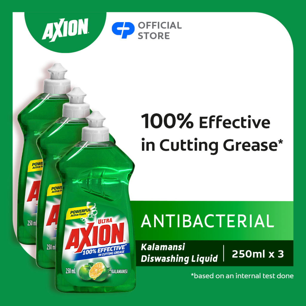 Axion Kalamansi Antibacterial Dishwashing Liquid with Triple Active Power 250ml Pack of 3
